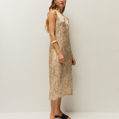 COLECCIÓN CHICA, ROPA, Vestidos y FaldasVestido largo estampado con cuello redondo y manga corta. Detalle de abertura en el bajo. Prenda sostenible. Poliéster reciclado 97%. Elastán 3%.59,95€59,95€ -