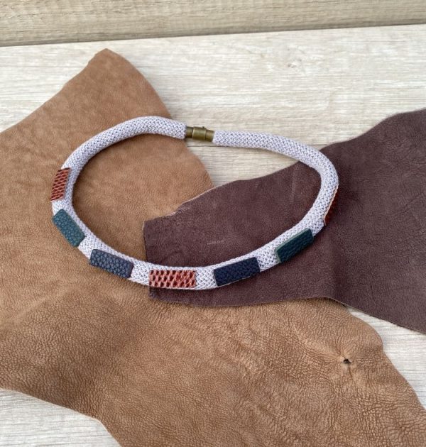 BISUTERÍA, COLECCIÓN CHICA, Colección Piel, CollaresCollar con apliques de piel, súper ligero y cómodo de llevar al tener el cierre de imán hipoalérgico. Cordón: 100% algodón Apliques: 100% piel Largo aproximado 58 cm Hecho en España de forma artesanal.36,00€36,00€ -