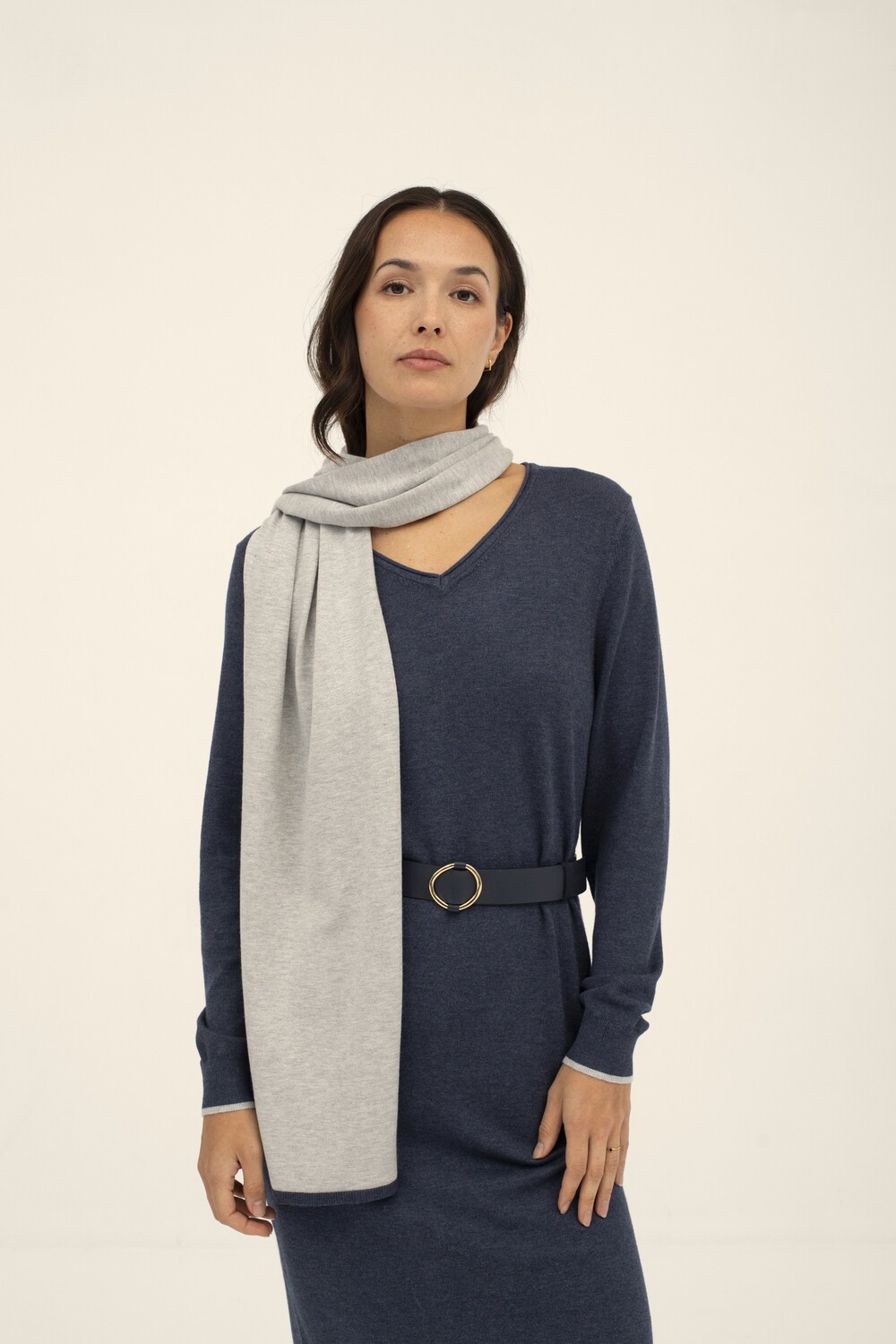 Bufanda con un ribete a contraste de color alrededor de todo su borde, que le da un toque único y elegante.