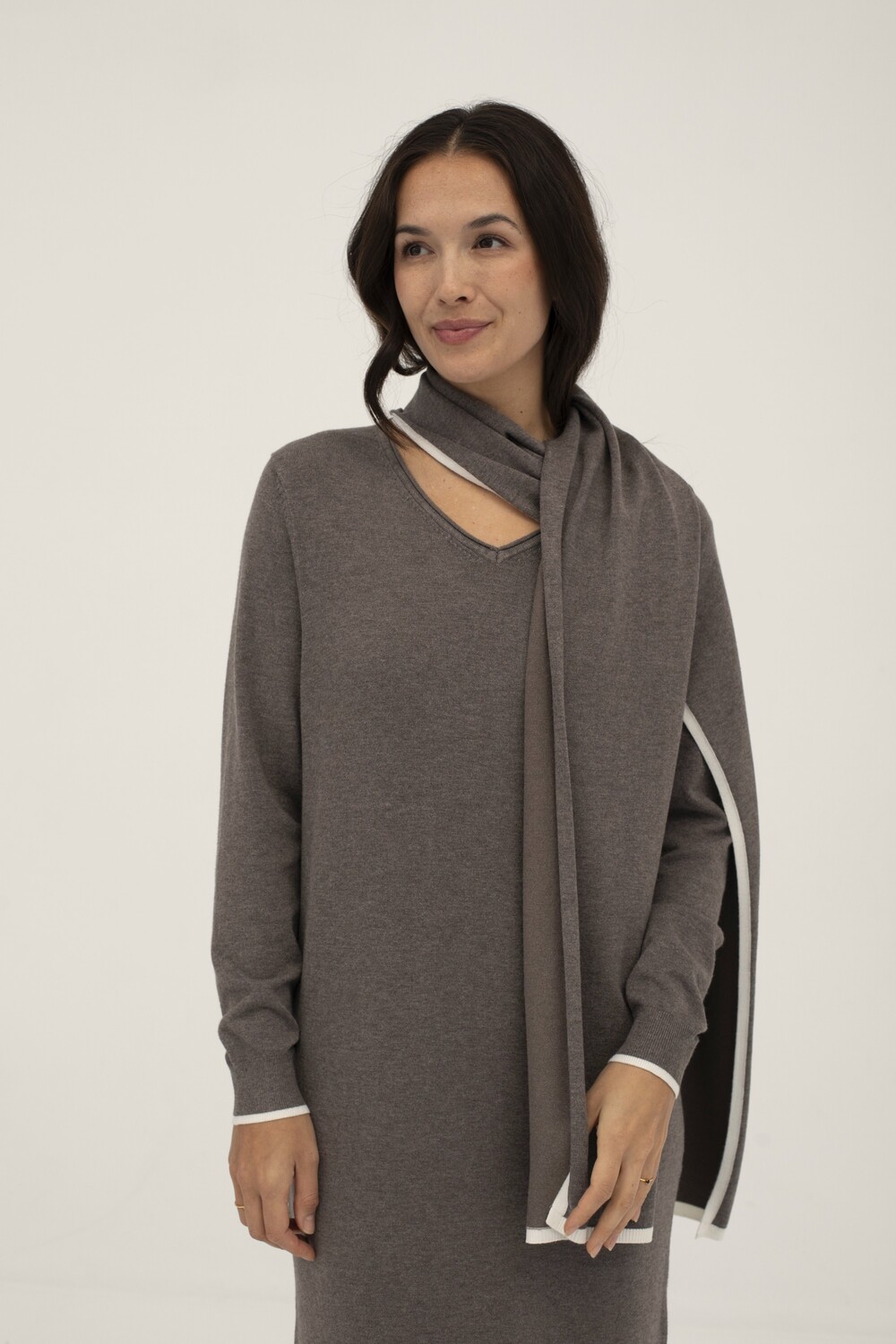 Bufanda con un ribete a contraste de color alrededor de todo su borde, que le da un toque único y elegante.