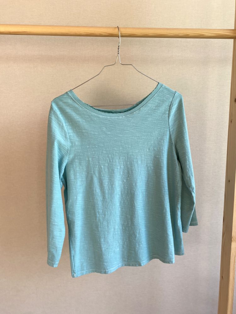 Camiseta 100% algodón, cuello barca y manga larga.