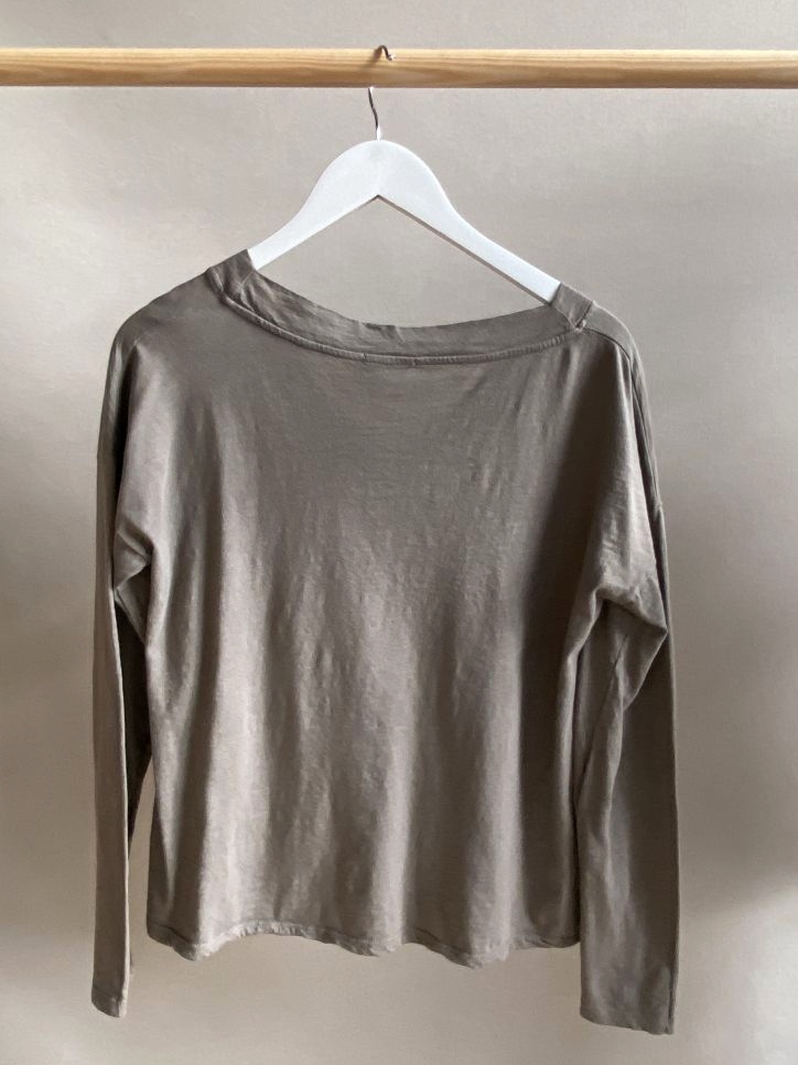 Camiseta de manga larga caída, confeccionada en 100% algodón suave.