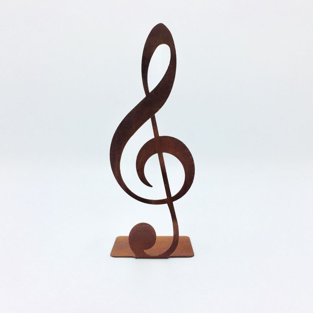 Reproducción en hierro oxidado de la clave de sol, símbolo musical universal. Puedes colocar una pequeña vela en su base y conseguir un ambiente acogedor. Ideal para los melómanos.