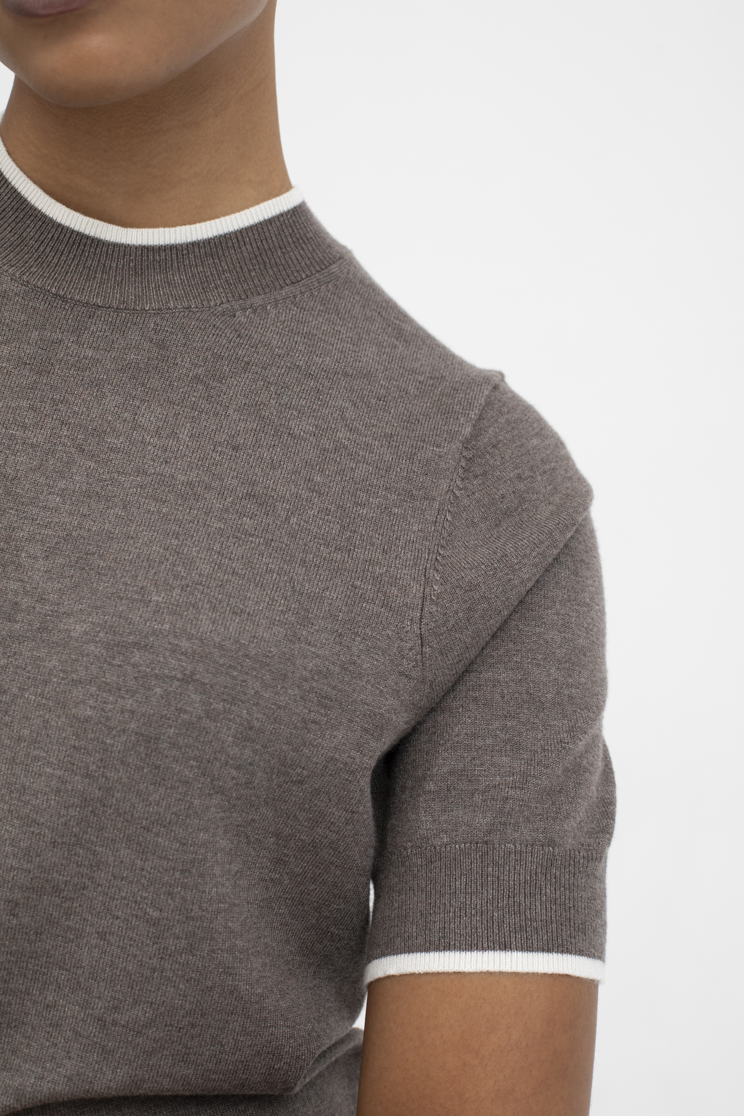 Jersey de manga corta con cuello redondo. Tiene el detalle de un ribete a contraste en el cuello y los puños,